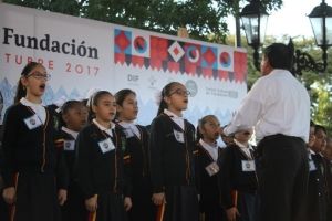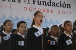 La reseña de este 447 aniversario fue dada por alumnos de la escuela primaria Galileo Galilei, al igual que la explicación del escudo de armas, destacando la representación de las tribus urbanas, el mezquite que dio sombra al primer cabildo, entre otros elementos.