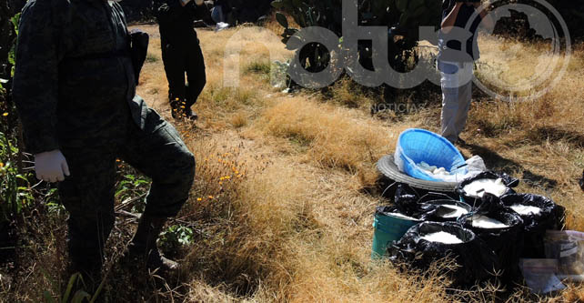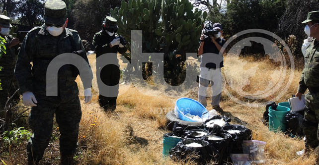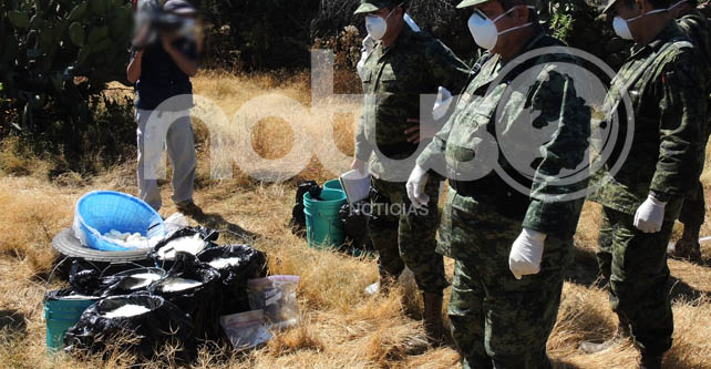 Elementos de la Secretaría de la Defensa Nacional, encontraron dos puntos en los que se elaboraban drogas, uno de ellos en la comunidad de Monte Redondo que se encuentra en la colindancia entre Cuerámaro y Pénjamo, según las autoridades.