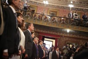 Guanajuato, Gto.- Con muestras de solidaridad y apoyo por el luto nacional, el Gobernador, Miguel Márquez Márquez y la Secretaria de Cultura, María Cristina García Cepeda, iniciaron las actividades de la Cuadragésima Quinta Edición del Festival Internacional Cervantino “La Fuerza de la Cultura”, que tiene como invitados de honor a Francia y al Estado de México.