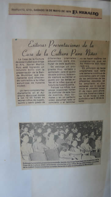 Cada mes, este recinto cultural presentaba conciertos infantiles y la Banda Municipal dirigida por el maestro Margarito Olmos, otros espectáculos, como la Orquesta de la Universidad de Guanajuato y la Rondalla Estudiantil de la Casa de la Cultura.
