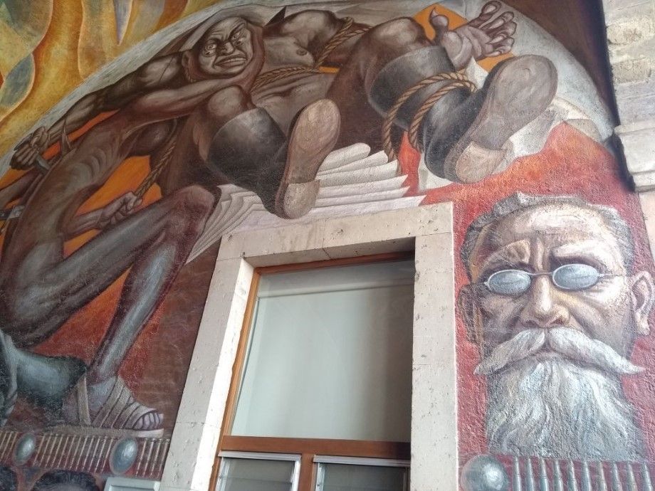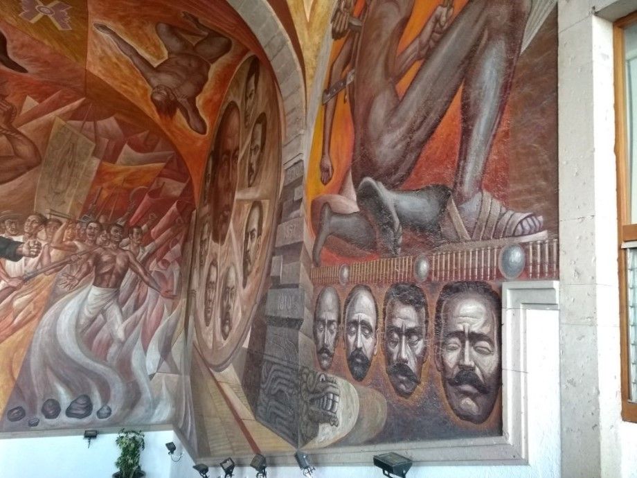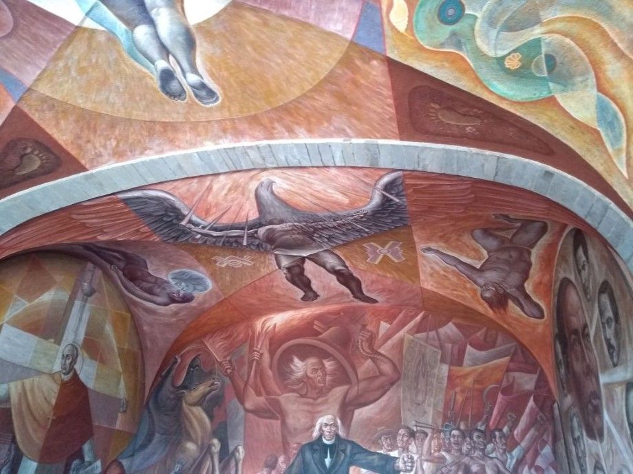 Irapuato, Guanajuato.- El mural de las Revoluciones es una obra del maestro Salvador Almaraz realizada en el año de 1968 donde se plasman “Los sentimientos y obsesiones de Almaraz”, en esta obra se pueden observar a varios personajes icónicos de la historia de México como Benito Juárez, Venustiano Carranza entre otros.
