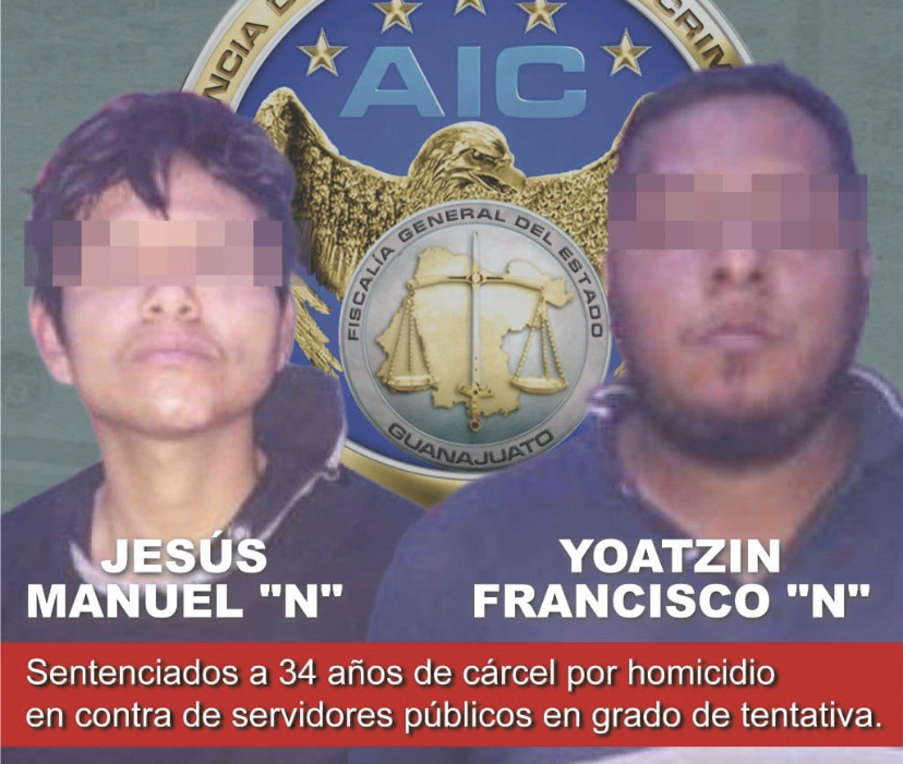 Una vez investigados los hechos, la Fiscalía logró acreditar la responsabilidad de JESÚS MANUEL “N” y de YOATZIN FRANCISCO “N”, en el intento de homicidio en contra de los servidores públicos, por lo que fueron vinculados a proceso penal y posteriormente, en juicio oral fueron sentenciados a 34 años de cárcel y al pago de la reparación de daño.