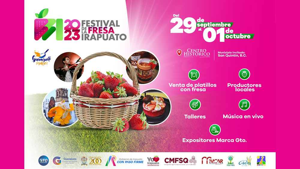 Irapuato, Gto.- Este fin de semana, la 11va edición del Festival de la Fresa llega al Centro Histórico de Irapuato, para ofrecer actividades culturales, artísticas y gastronómicas para todas y todos.
