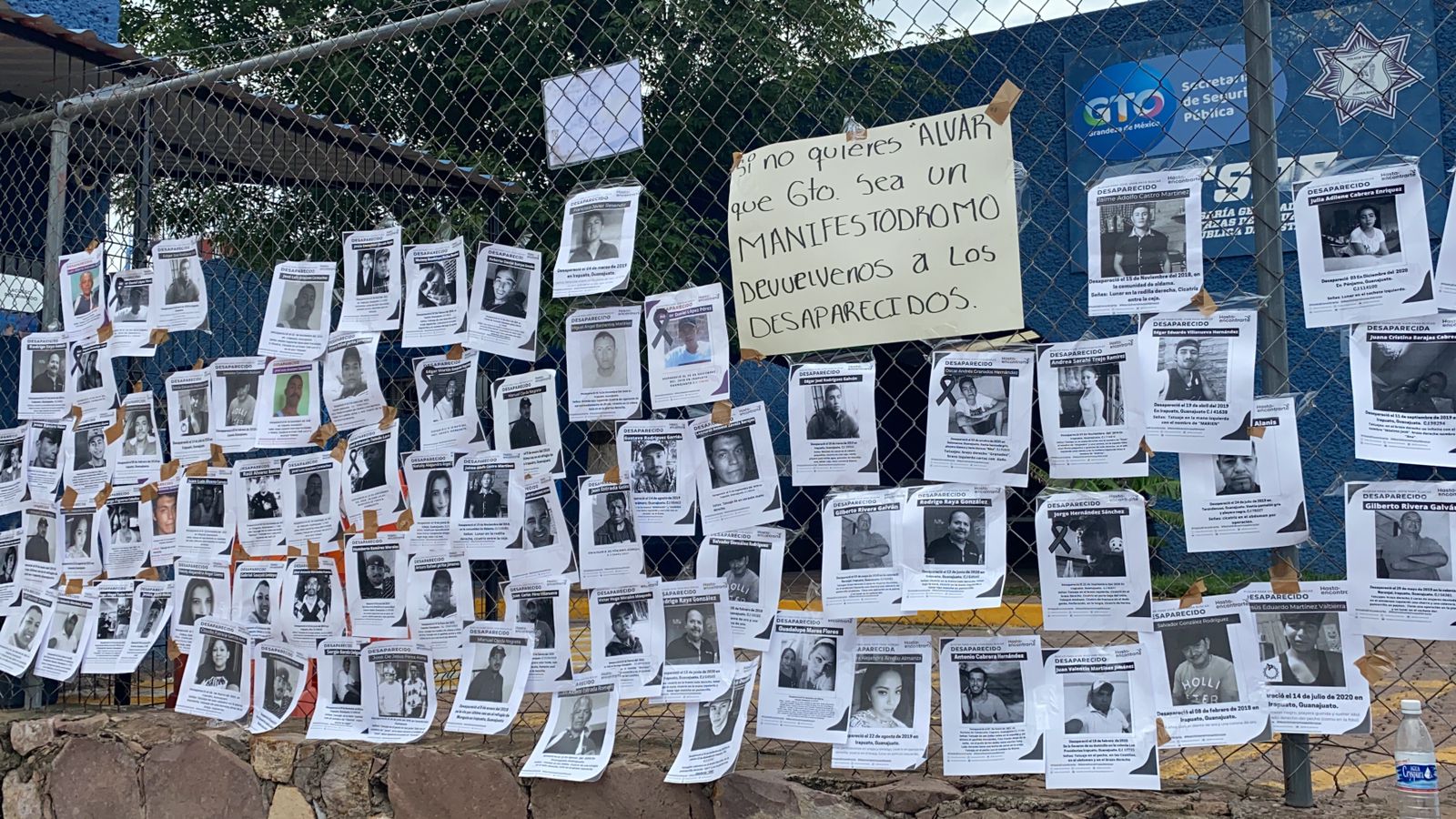 Madres, padres, hermanas e hijos de victimas arribaron a las 10 de la mañana a las escalinatas del Teatro Juárez, para moverse a las oficinas de las Fuerzas de Seguridad Pública del Estado (FSPE) en donde colocaron en sus instalaciones carteles de sus personas desaparecidas, para culminar su andar en la glorieta Santa Fe.