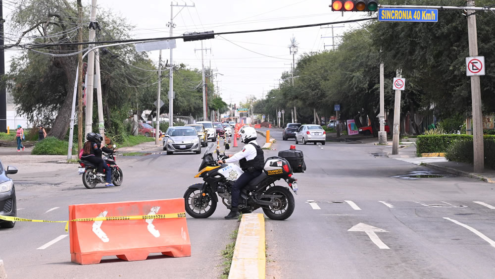 El bulevar Estrella en su dirección para llegar al fraccionamiento Las Plazas, se ha habilitado como doble carril para agilizar el tráfico vehicular y disminuir las afectaciones ante el diagnóstico que lleva a cabo la Japami para reducir riesgos para la población.