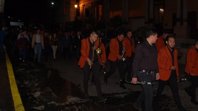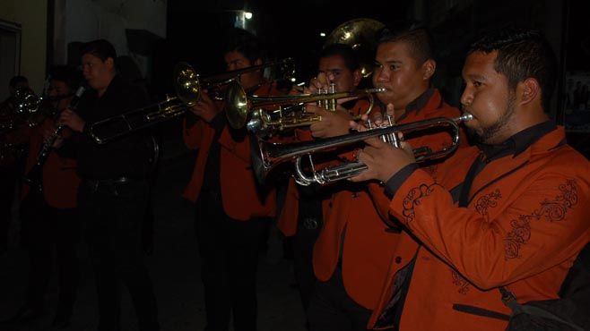 La Música de banda de viento, dio un toque de alegría al acontecimiento, ya que junto con las personas, ellos avanzaron amenizando cada instante.