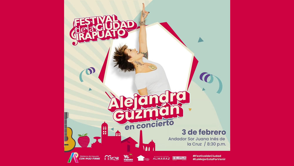 Irapuato, Gto.- Como parte de los festejos por el 477 aniversario dentro del Festival de la Ciudad, este sábado 3 de febrero se presentará la reina del Rock Alejandra Guzmán, de manera gratuita en la calle Sor Juana Inés de la Cruz.