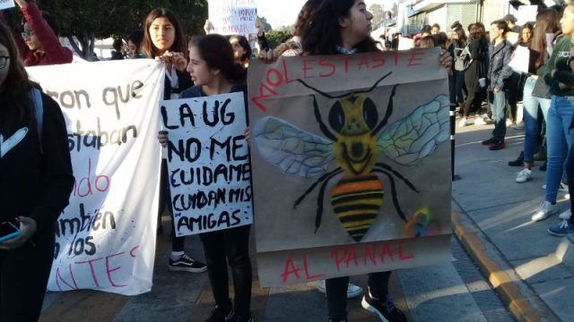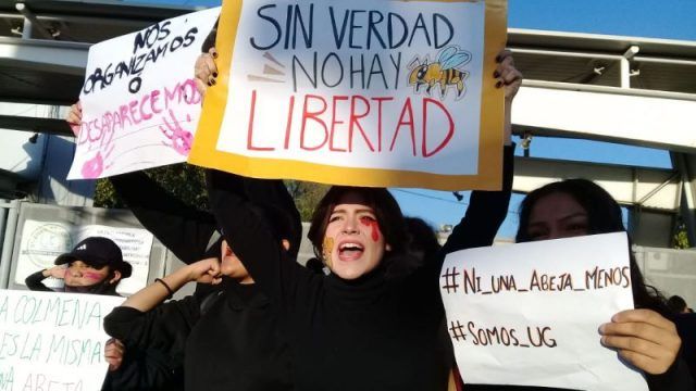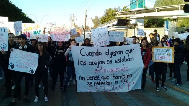 Los estudiantes coreaban las consignas “NI una abeja menos”, “¿Por qué nos asesinan si somos la esperanza de américa Latina?”, “Alerta, alerta que llegó la colmena a defender a sus abejas”, entre otras, que difunden.