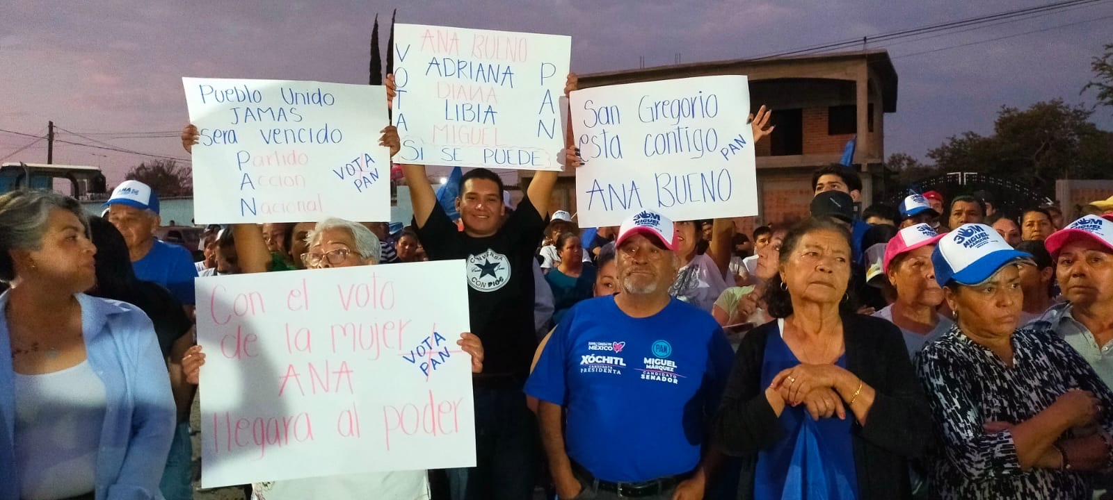 Cuerámaro, Guanajuato. Entre una caravana llegó Ana Bueno a la comunidad de San Gregorio a reunirse con la población de la localidad; la candidata a la presidencia municipal por Acción Nacional estuvo acompañada de Miguel Márquez y Adriana Rodríguez ambos candidatos al senado de la república además de Diana Gutiérrez candidata a la diputación federal por el distrito 7.