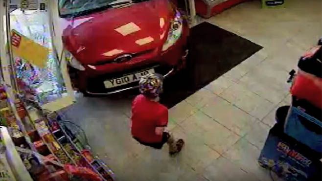 La policía difundió las imágenes de las cámaras de vigilancia de la tienda, que captaron cómo se introduce el vehículo al establecimiento.