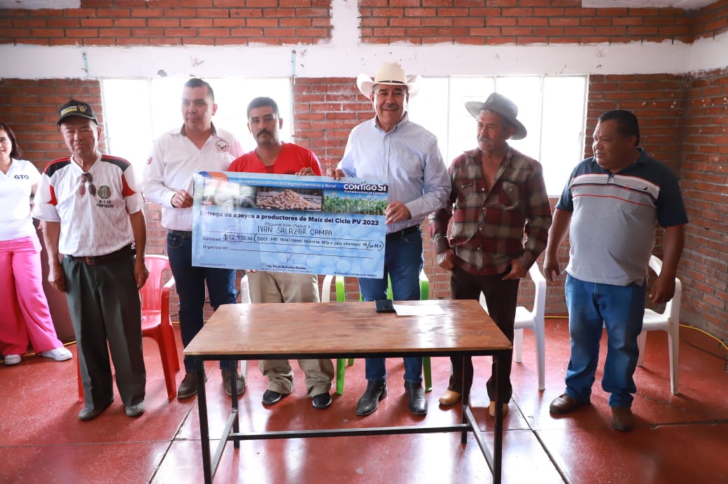 Salamanca, Gto.- El Gobierno del Estado cumple con su compromiso de auxiliar a las mujeres y hombres del campo frente a las dificultades, por ello, hoy entregó apoyos económicos a los productores de maíz que recibieron un bajo precio por la venta de su cosecha.