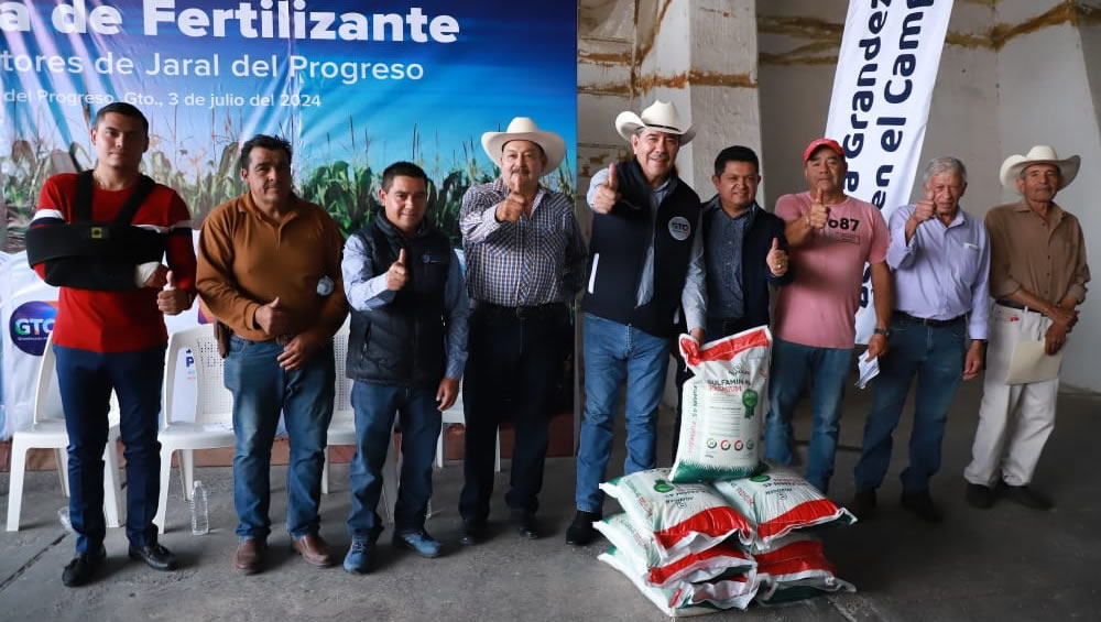 Jaral del Progreso, Gto.- Para ayudarles a combatir los costos de los fertilizantes, el Gobierno del Estado de Guanajuato, en coordinación con el Gobierno Municipal, entregaron estos insumos a agricultores de Jaral del Progreso.