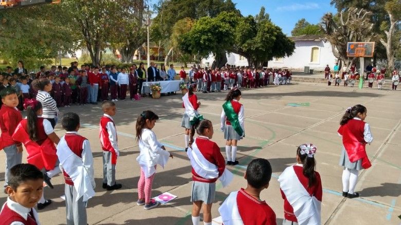 En conmemoración al Día de la Bandera, los alumnos de la Escuela Primaria Benito Juárez rindieron un homenaje al Lábaro Patrio, en donde se realizaron los honores con la escolta de la institución educativa, así como un par de poesías y la exhibición de banderas con los cambios que ha tenido la enseña nacional desde su creación hasta la bandera tricolor que actualmente nos identifica como mexicanos.