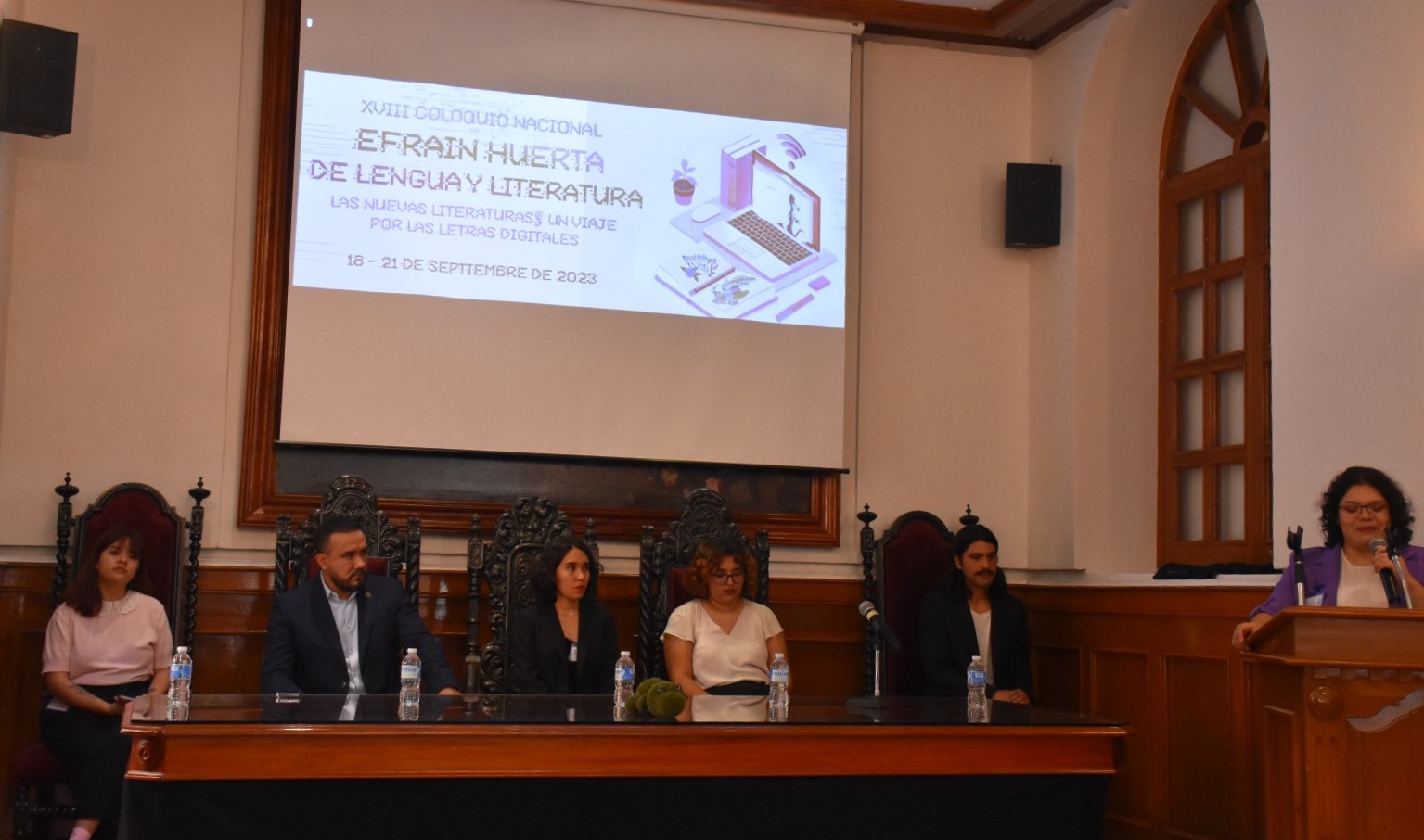 En la inauguración de esta nueva edición, ofrecieron sus mensajes las alumnas Renata Zamorano García, Coordinadora de la XVIII Edición del Coloquio “Efraín Huerta”; Sara Gómez Rojas, Coordinadora del IX Encuentro de edición y creación “Efrén Hernández”; Leilani Rodríguez Escalante, Presidenta del GO SALE Valenciana y Angélica Briseño Sánchez, Vicepresidenta.
