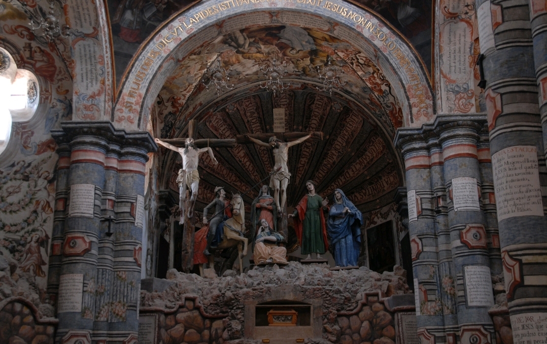 Sin embargo, el atractivo de este santuario, no sólo se encuentra en las pinturas de los techos, los altares también están llenos de relieves y esculturas que le brindan una belleza particular. Estas obras muestran escenas de la vida de Jesucristo y sus apóstoles, pasajes de la historia sagrada o retratos de personajes relativos a la historia local.