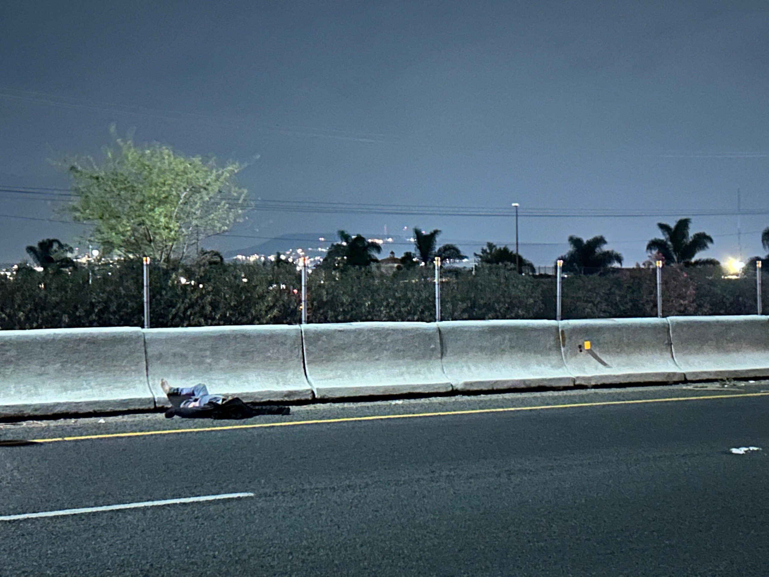 Varios automovilistas reportaron al sistema de emergencias 911 haber visto a una persona tirada cerca de los muros de concreto de la carrera, al arribar las autoridades dijeron que parecía que habría sido arrollado ya en múltiples ocasiones por varios automovilistas.