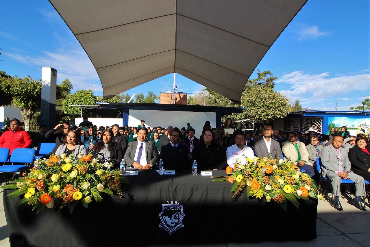 Con la representación de la Dra. Yoloxóchitl Bustamante Díez, secretaria de Educación de Guanajuato, el delegado de la Región Suroeste, Gabriel Espinoza Muñoz, reconoció el trabajo profesional del personal de esta institución educativa, además de los alumnos y padres de familia, estos últimos, comprometidos con la educación de sus hijos, porque la “Secundaria General No.04 es un referente educativo en el Municipio en la Región y en el Estado”.