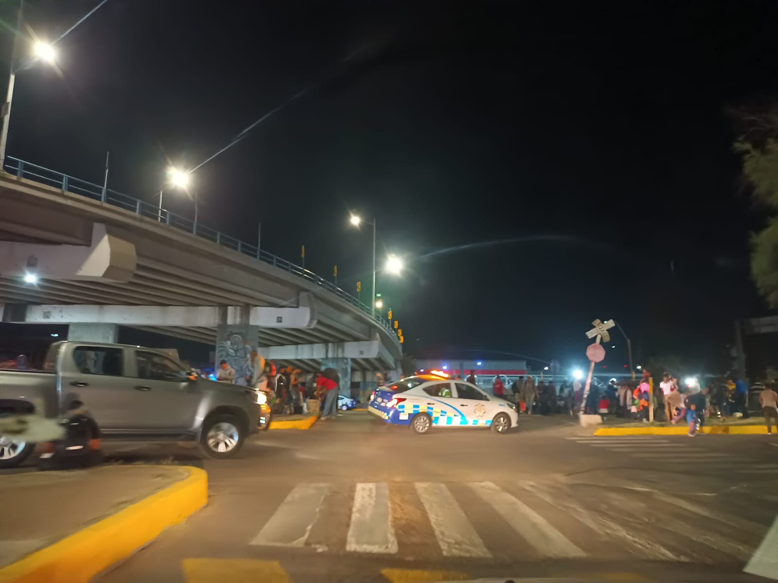 Irapuato, Guanajuato.- Bloqueo en Paseo Irapuato, justo debajo del puente XXI, debido a la llegada masiva de migrantes dos mil migrantes.
