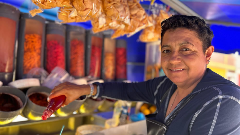Manuel Doblado, Guanajuato. – Ángeles, con sus 42 años de edad, y su hermana María Dolores Cabrera, han estado sirviendo “delicias culinarias” durante los últimos 13 años a través de su negocio “Botanas Lolis”. Desde frutas frescas hasta creaciones únicas como las jicaletas y las greñudas.