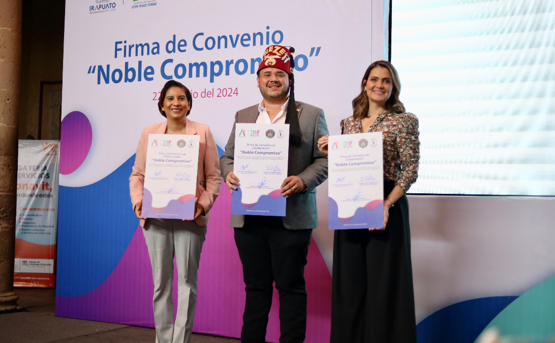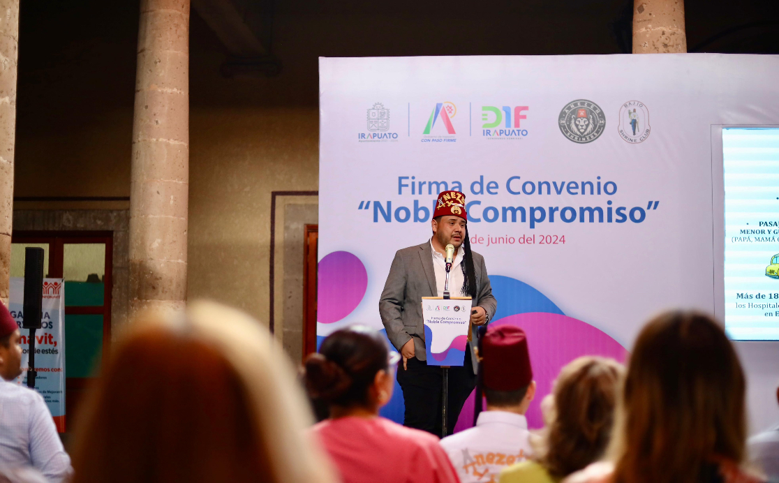 Irapuato, Gto.- Para trabajar en beneficio de las niñas, niños y adolescentes de Irapuato, el Gobierno Municipal, el Sistema DIF Irapuato y Bajío Shrine Club, firmaron el convenio “Noble Compromiso”; con el cual se suman esfuerzos y voluntades para garantizar el derecho a la salud de las infancias irapuatenses.