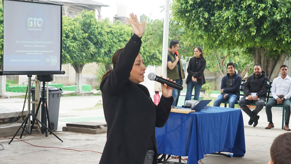 El evento fue precedido por la Lic. Ana Luisa Castillo Moreno coordinadora regional del centro estatal de prevención social de la violencia y la delincuencia, Juan José Hernández Ayala regidor comisionado y representante de la alcaldesa Laura Villalpando Arroyo, José Luis Rodríguez Solorsano coordinador municipal de Prevención, así como la maestra Alejandra Hernández Godoy directora del plantel escolar.