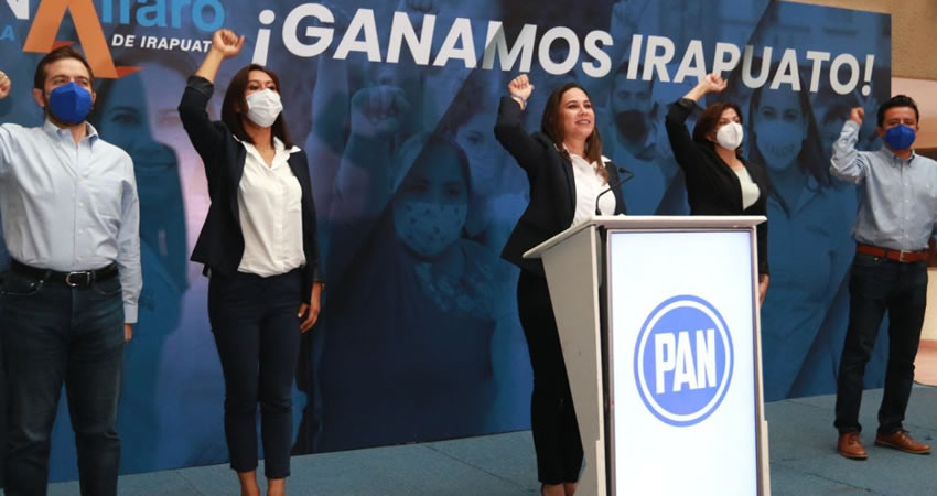Así mismo, algunos simpatizantes del Partido Acción Nacional, festejan en Irapuato con banderas del PAN y porras hacia Lorena Alfaro, en señal de apoyo, declarándola ganadora.