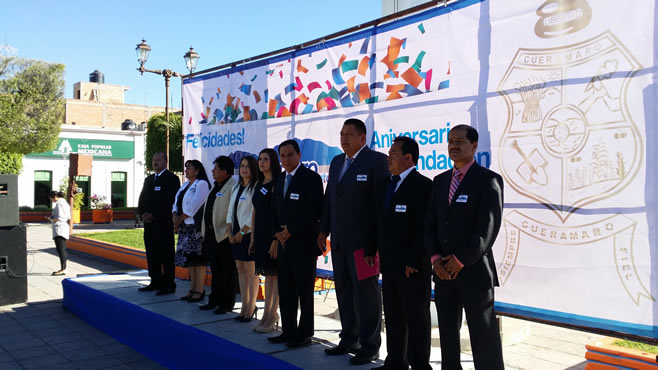 Cuerámaro, Guanajuato.- La Administración Municipal 2015-2018 encabezada por Moisés Cortéz celebró este jueves el aniversario de la fundación de Cuerámaro con un acto cívico en el jardín principal para posteriormente seguir con el desfile conmemorativo por las principales calles de la ciudad.