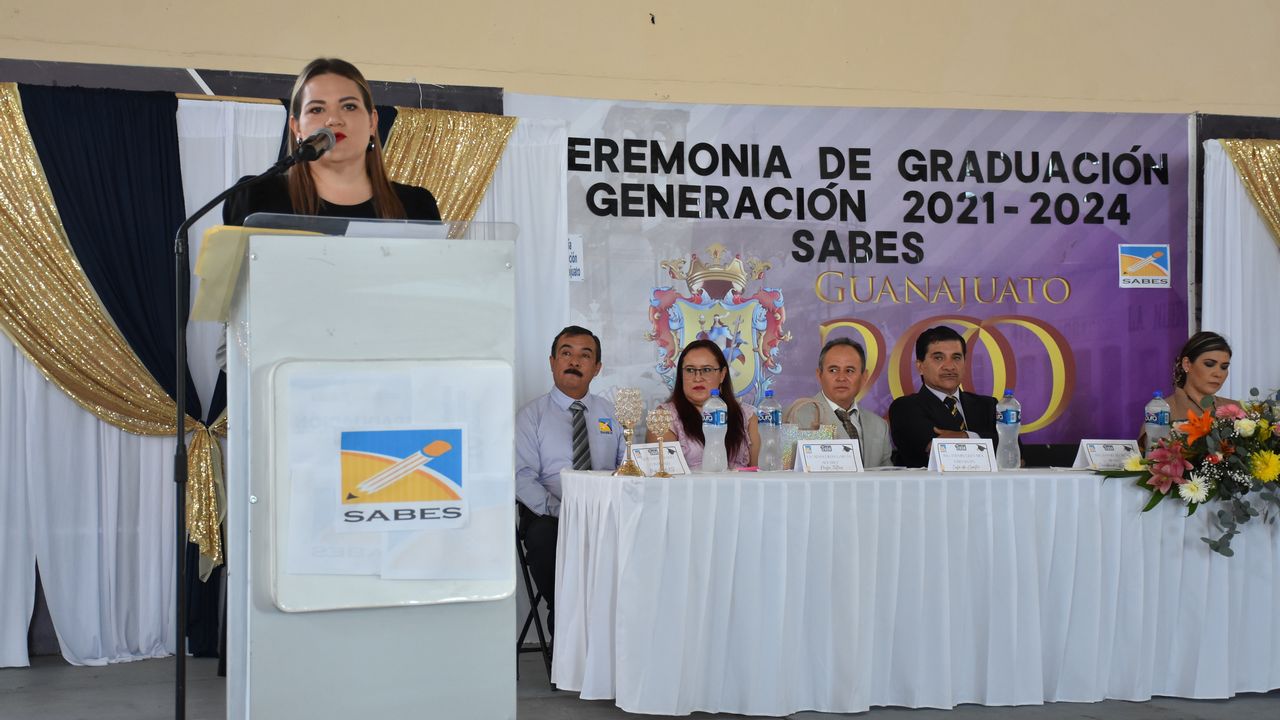 Abasolo, Gto.- Este viernes 14 de junio, se llevó a cabo la ceremonia de graduación de la Generación 2021 – 2024 de alumnos del Sistema Avanzado de Bachillerato y Educación Superior SABES Plantel Cabecera Abasolo, en esta ceremonia estuvo presente como invitada especial la Presidenta Municipal de Abasolo Rocío Cervantes Barba.