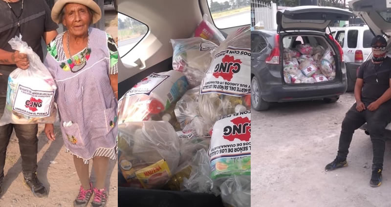 Con cajas y bolsas con comida que tienen una etiqueta del CJNG han estado apareciendo especialmente en comunidades donde se han entregado las despensas a las personas que ellos consideran que requieren un apoyo de comida.