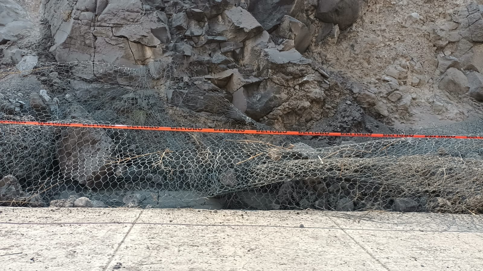 Actualmente se ha colocado cinta de precaución con la leyenda “peligro”, advirtiendo a los conductores sobre el riesgo. La presencia de estas piedras representa una amenaza real, ya que si alguna piedra llega a caer a la vialidad y tiene contacto con las llantas podría resultar en la pérdida de control del vehículo, aumentando el riesgo de accidentes en la vía.