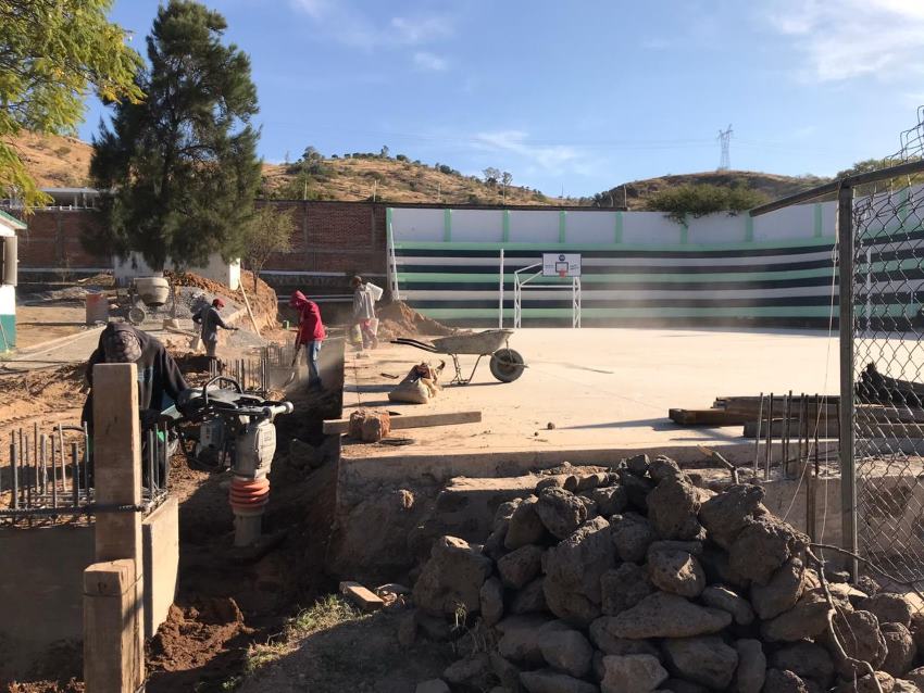 Los trabajos van desde el mejoramiento de las escuelas, áreas verdes, hasta él creación de este nuevo auditorio para tener eventos en este sitio techado.