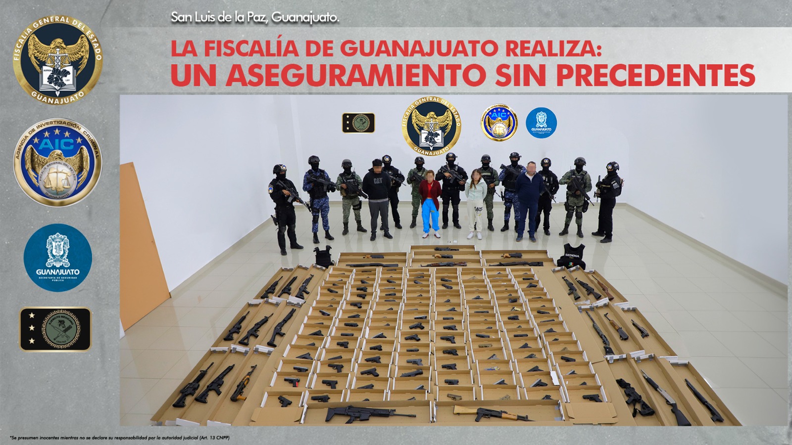 San Luis de la Paz, Gto.- La Fiscalía de Guanajuato incautó 143 armas de fuego, en un solo operativo en San Luis de la Paz, en operación coordinada con la Secretaría de Seguridad Pública y el Ejército Mexicano.