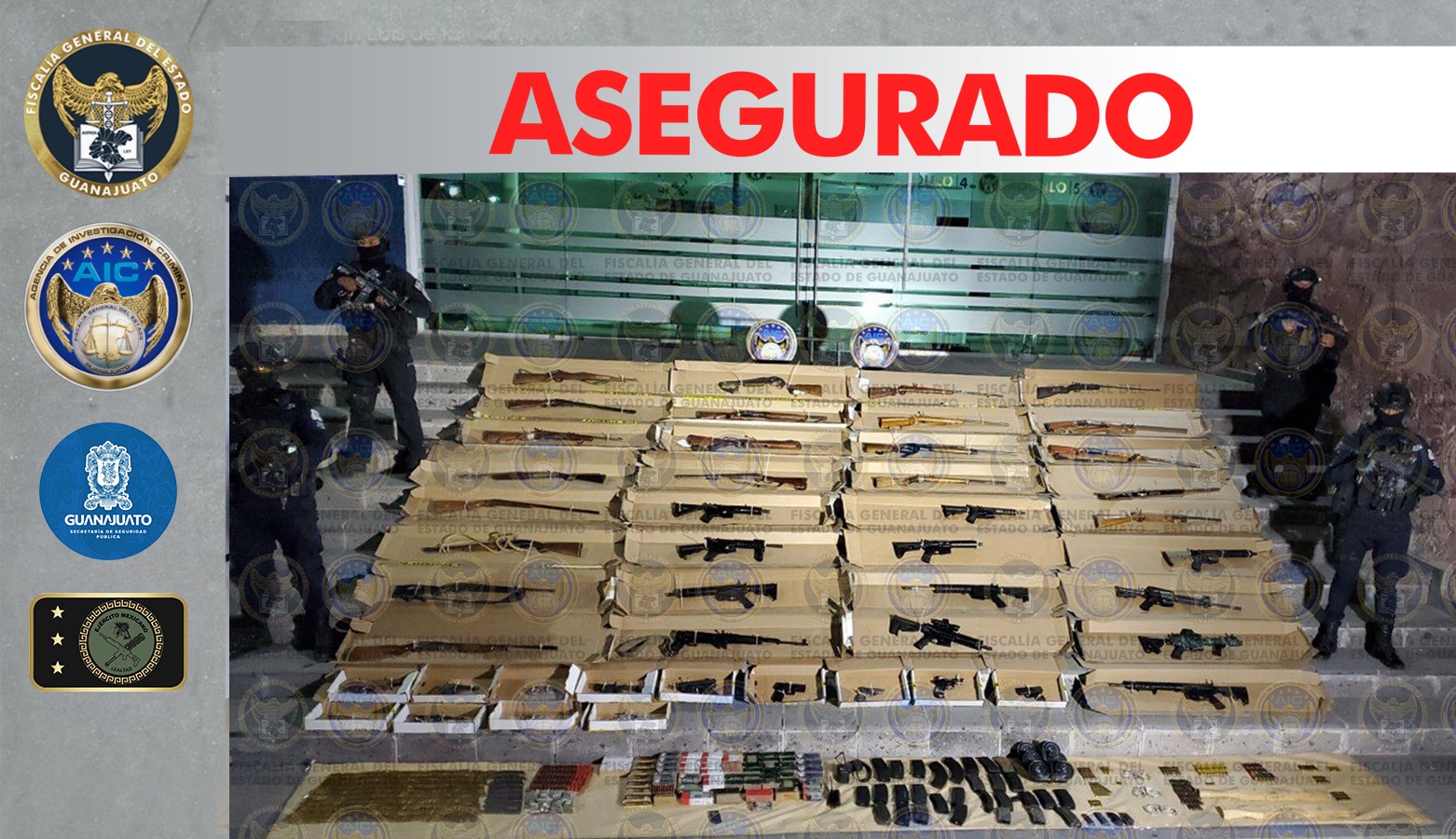 San Felipe, Gto.- La Fiscalía de Guanajuato en coordinación con la Secretaría de Seguridad Pública del Estado y la SEDENA desplegó operativos ministeriales en el municipio de San Felipe y aseguró un arsenal, equipo táctico, droga, dinero en efectivo, entre otros objetos del delito.