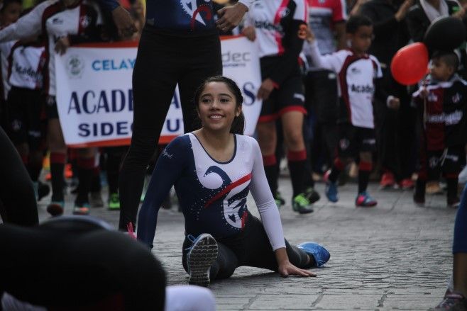 Diversos grupos deportivos de SIDEC fueron los contingentes de preámbulo a las instituciones educativas, que desfilaron desde el nivel primaria hasta profesional, hasta cerrar con la Unión e Cabalgadores del Bajío y la Asociación de Charros de Celaya.