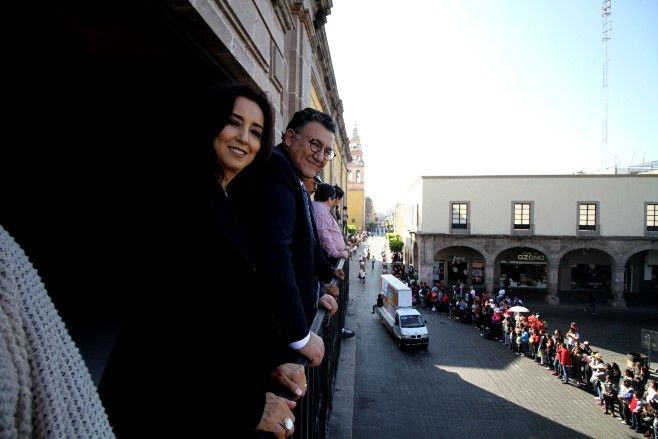 Desde el balcón de la Presidencia Municipal presenciaron el desfile el propio presidente de Celaya, Ramón Ignacio Lemus Muñoz Ledo, acompañado de miembros del Ayuntamiento; el coronel Roberto Molina; por parte de la Delegación de Educación, Karina Sifuentes; y Wendy Muñiz Carreño, oficial mayor.