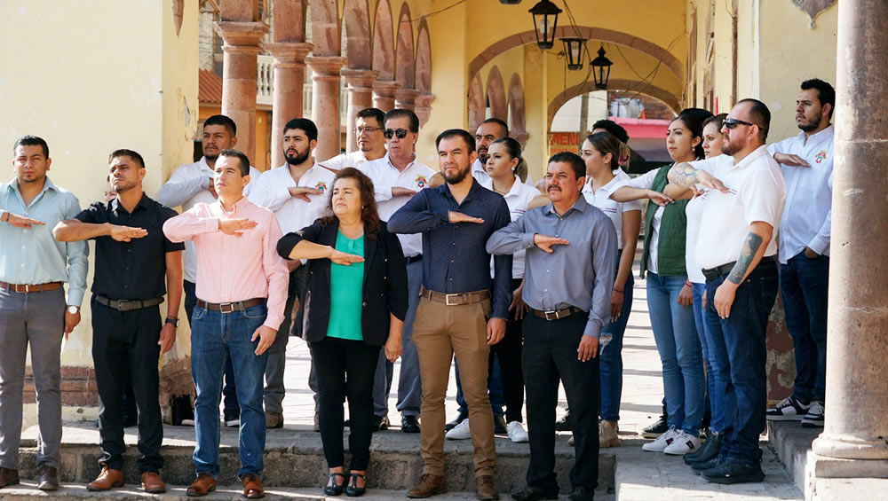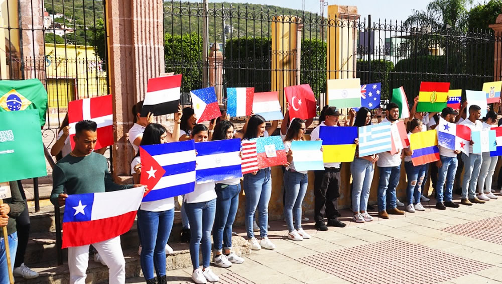 Dentro del acto cívico, personal de las distintas áreas de la Administración Municipal participaron en la conmemoración realizando un recorrido con imágenes de las banderas de los países que integran la Organización de las Naciones Unidas.