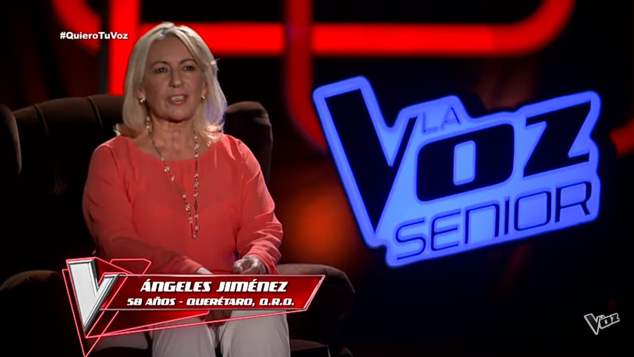 Ángeles Jiménez de 58 años de edad interpretó el tema titulado “Un mundo raro” de la autoría de su tío José Alfredo Jiménez, que sin pensarlo el coach Ricardo Montaner volteó su silla para aceptarla en su equipo.