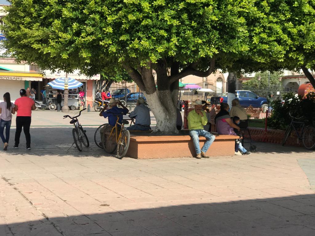 Lamentablemente en las calles y jardineras del centro de Cuerámaro se observaban personas mayores de la tercera edad compartiendo un momento entre ellos sin ninguna medida sanitaria, así como ciudadanos pasaban en sus motocicletas y caminando sin usar el cubre bocas.