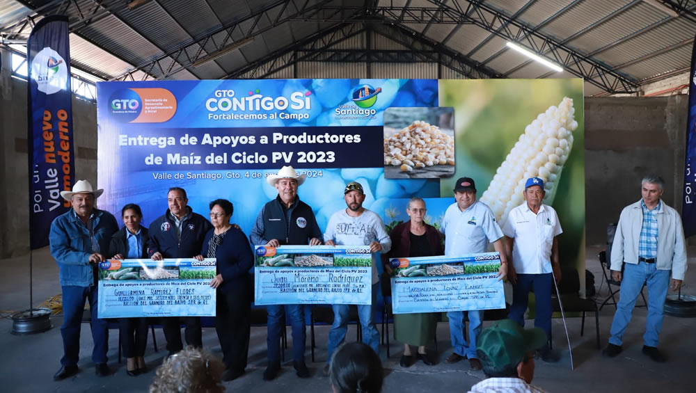 Valle de Santiago, Gto.- El Gobierno del Estado cumple con su compromiso de auxiliar a las mujeres y hombres del campo frente a las dificultades, por ello, hoy entregó los apoyos económicos prometidos a los productores de maíz que recibieron un bajo precio por la venta de su cosecha.