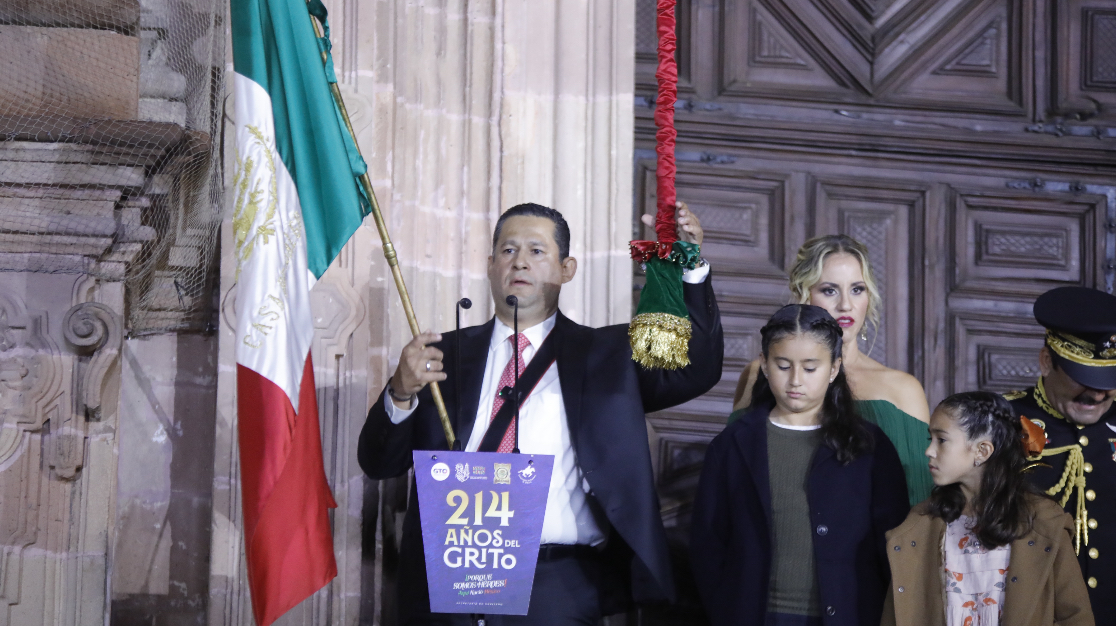 “¡Mexicanos!, ¡Vivan los héroes que nos dieron patria y libertad! ¡Viva Hidalgo! ¡Viva Morelos! ¡Viva Josefa Ortiz de Domínguez! ¡Viva Allende! ¡Viva Aldama! ¡Vivan los jóvenes que luchan por México! ¡Viva Dolores Hidalgo Cuna de la Independencia Nacional! ¡Viva Guanajuato! ¡Viva México! ¡Viva México! ¡Viva México!”, gritó el Gobernador.