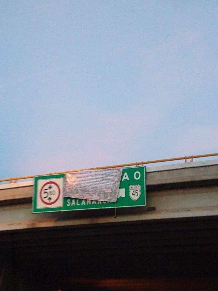 Los lugares donde las lonas fueron encontradas fueron: el jardín principal, el acceso oriente a Silao (por la autopista a Guanajuato), la tercera en el puente vehicular del libramiento norte y una última en el puente peatonal de avenida Coecillo.