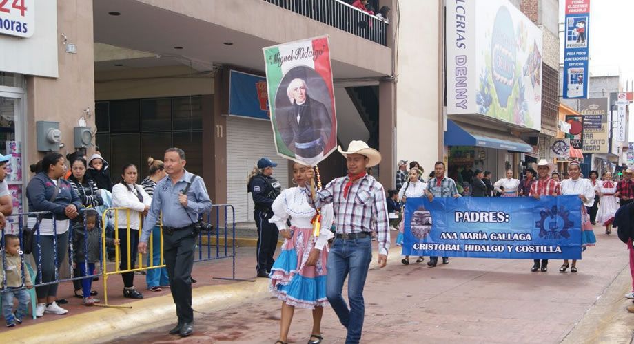 El programa de este desfile conmemorativo inició con la ofrende floral que las autoridades locales y militares hicieron ante el monumento de Miguel Hidalgo, posterior a eso, la participación de las instituciones educativas de nivel básico, medio superior y superior del municipio, fueron presentando a través de imágenes y algunas personificaciones, las diversas etapas y facetas que el cura Hidalgo tuvo a lo largo de su vida.