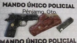 Pénjamo, Guanajuato.- Como parte de las acciones coordinas entre la Secretaría de Seguridad Pública del Estado (SSPE), la Procuraduría General de Justicia del Estado (PGJE) y el Mando Único, fue detenida una pareja en posesión de un arma de fuego y residuos de droga en este municipio.