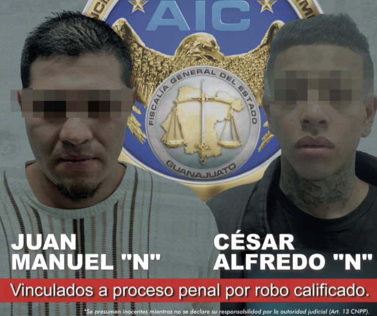Ambos fueron detenidos en flagrancia por la policía municipal y posteriormente en audiencia, la Fiscalía de Guanajuato obtuvo su vinculación a proceso penal con prisión preventiva por su probable participación en el delito de robo calificado.