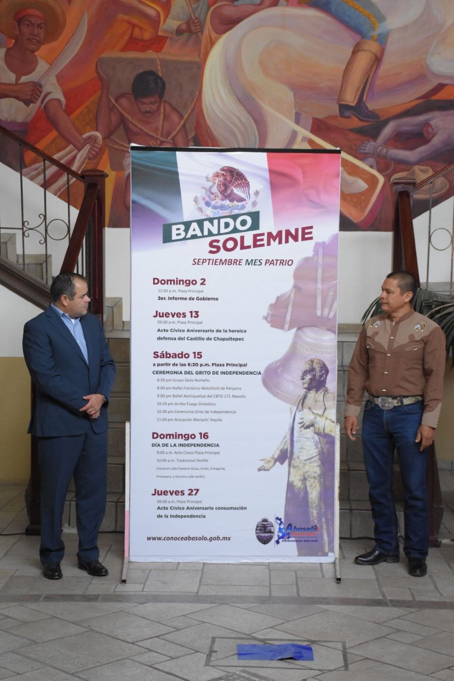 Abasolo, Guanajuato.- Como cada año, al inicio del mes de septiembre nuestra máxima autoridad Municipal realiza la develación del Bando Solemne, documento que muestra las diferentes celebraciones en el Mes Patrio.