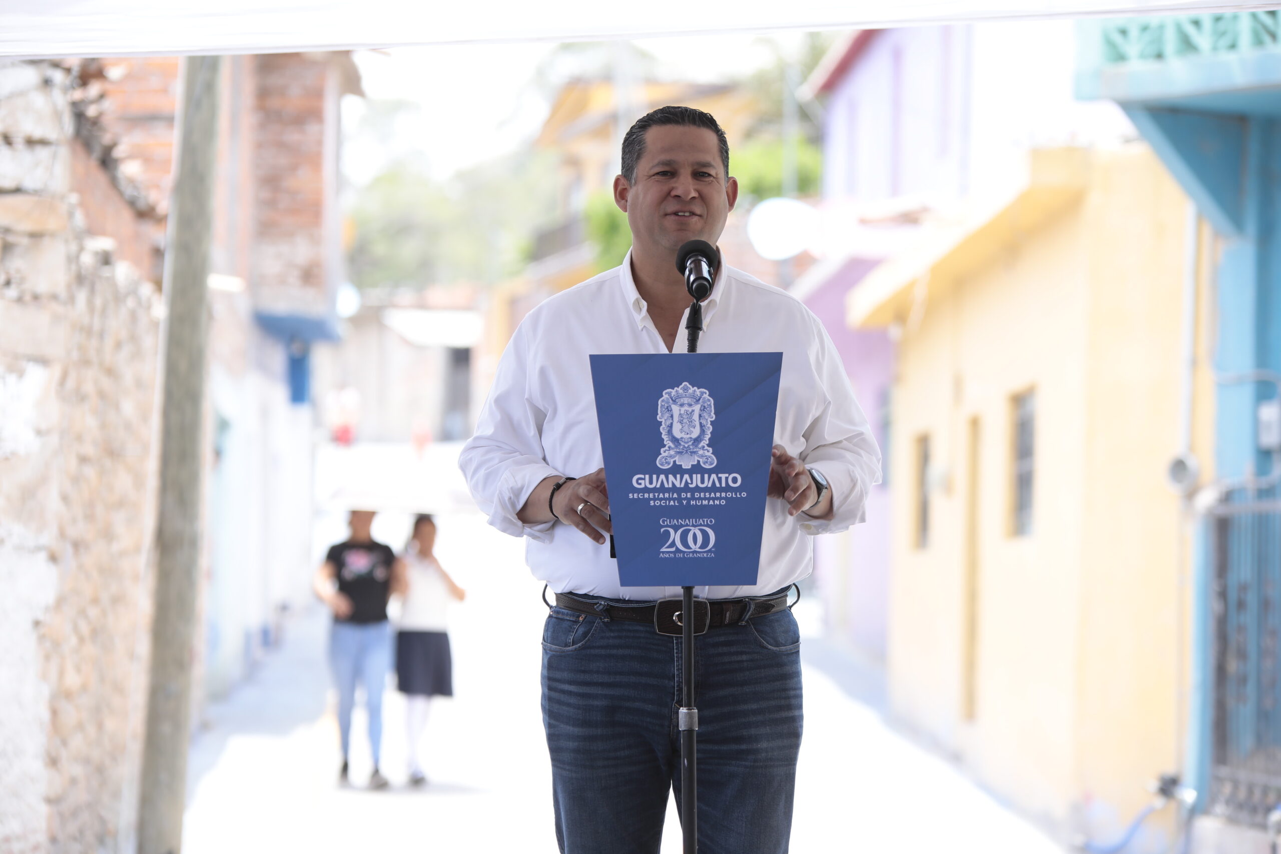 Diego Sinhue supervisó los trabajos de pavimentación en comunidades de Pénjamo