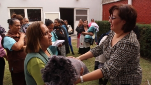 Pénjamo, Guanajuato.- La Presidenta del DIF municipal de Pénjamo, Maricela Mendoza Ríos, encabezó la entrega de 650 cobijas a personas vulnerables de diversas colonias y comunidades de la localidad, que viven en las zonas donde se presentan bajas temperaturas en esta época del año.