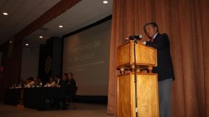 En representación del Rector General de la UG, Dr. Luis Felipe Guerrero Agripino; estuvo el Dr. José Luis Lucio Martínez, Secretario Académico, quien sostuvo que el participar en estas ceremonias siempre es un gusto, pues concluye un ciclo y al mismo tiempo marca el inicio de una nueva vida para los egresados, a quienes “les queda en la memoria la forma de ser de nuestra institución, los recuerdos de todos aquellos que los han acompañado a lo largo de este camino, que ha sido un éxito para ustedes”.