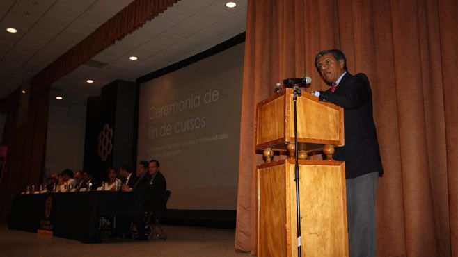 A los egresados, les recordó que deberán integrarse a la vida laboral, que viene acompañada de una serie de retos personales, pero también de responsabilidades sociales frente a una realidad compleja; en particular porque ser egresados de esta División conlleva el perfil humanista y los hace, de algún modo, herederos de la escuela más crítica, reflexiva y aún creativa de la Universidad.
