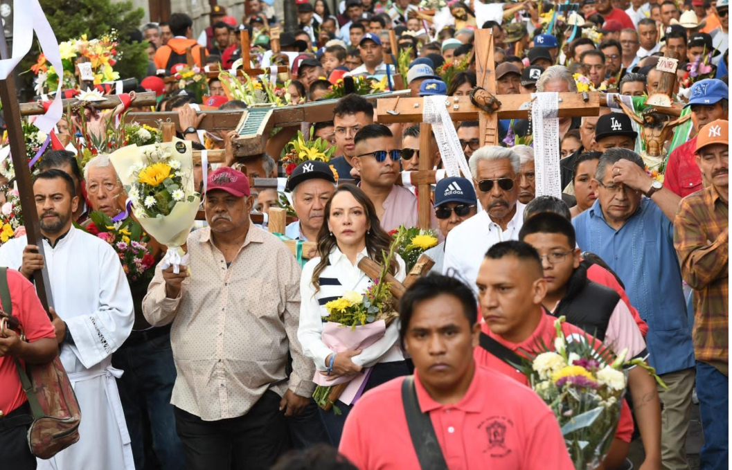 Guanajuato, Gto.- Como cada año, miles de albañiles acuden a la Plaza de la Paz a que les bendigan una adornada cruz que llevan a la obra y ahí celebran el 3 de mayo. Las personas candidatas a la presidencia municipal aprovecharon para placearse y hablar bonito a favor del gremio, como si no existiera otra realidad: estado y municipio viven una crisis económica por falta de obra pública y privada.